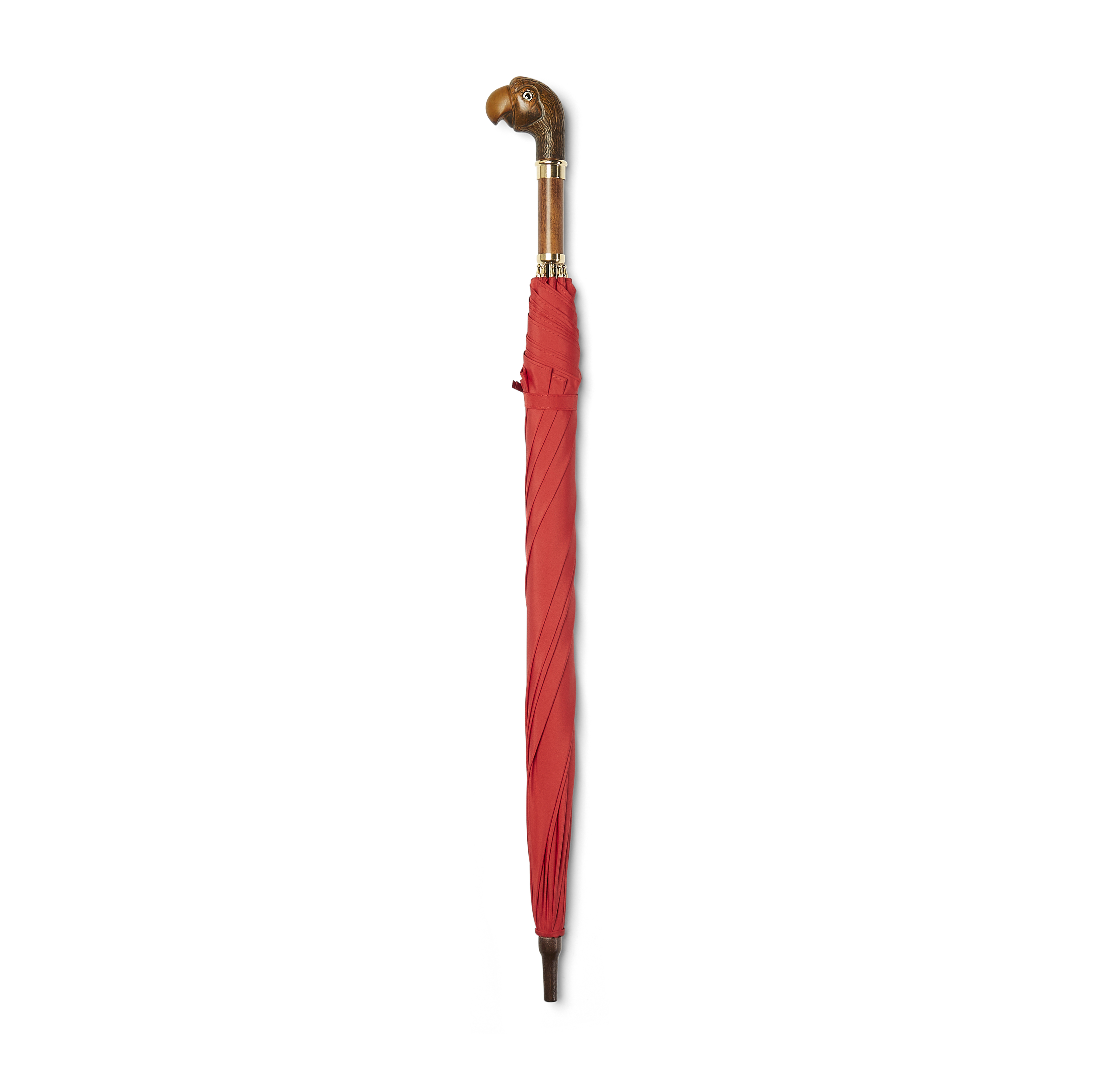 Parrots have featured in human writings, story, art, humour, religion, and music for thousands of years. Adored by many for their brightly coloured feathers and their ability to talk, parrots are considered as the most intelligent of birds. Made famous in the feature length Disney film “Mary Poppins”, these handmade ladies umbrellas are conveniently sized, lightweight and strong. The animal head is made from acrylic and is mounted on a beechwood stem finished with a gilt collar and swedge.