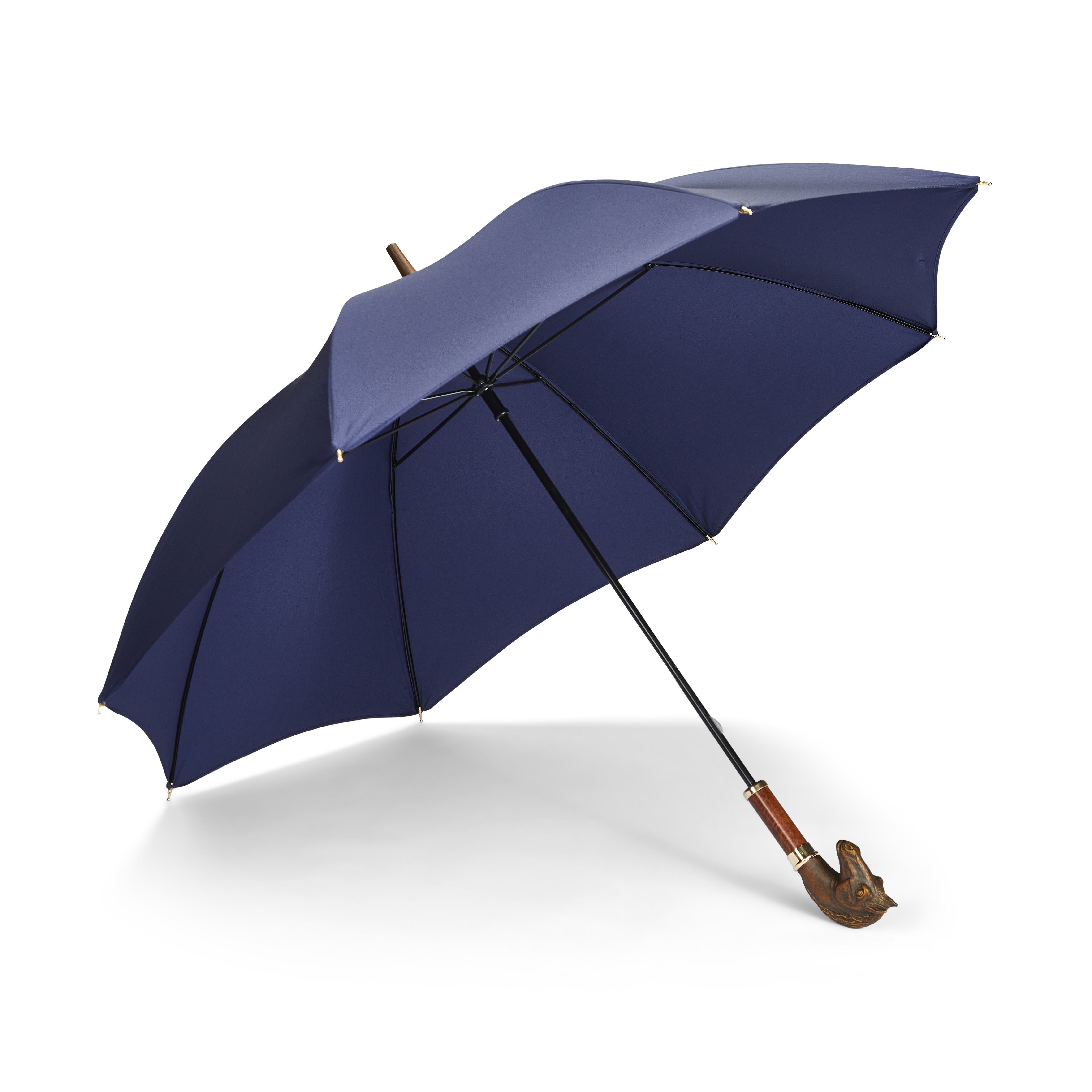 These handmade ladies umbrellas are conveniently sized, lightweight and strong. The horse head is made from acrylic and is mounted on a beechwood stem finished with a gilt collar and swedge.